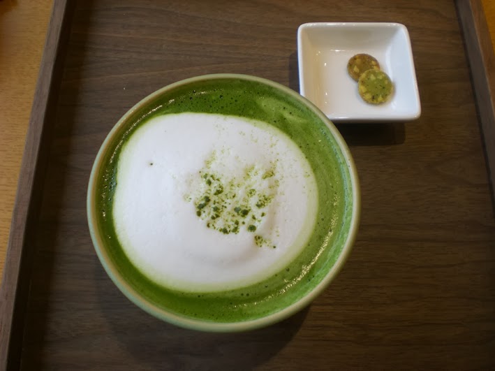 probar ese caldurrio verde tan bonito. En la foto un matcha con leche y espuma,